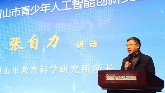 眉山市教育科学研究所所长在讲话中对本次青少年人工智能创新实践活动的组织成效和育人成果给予了充分肯定,认为活动内容丰富、组织规范,为学生展示人工智能与编程能力搭建了良好平台。所长还回顾了近年来眉山市在信息学奥林匹克竞赛等信息科技赛事中取得的优异成绩,充分体现了区域信息科技教育水平的持续提升。他希望以此次活动为契机,进一步深化人工智能教育实践,推动信息科技教育高质量发展,并勉励广大同学不断提升编程能力、拓展知识视野,将个人成长与国家发展相结合,为未来科技创新和国家建设贡献力量。